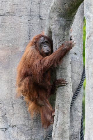 The name ‘orangutan’ is derived from the Malay and Indonesian words ‘orang’ meaning person and ‘hutan’ meaning forest, thus ‘person of the forest’.