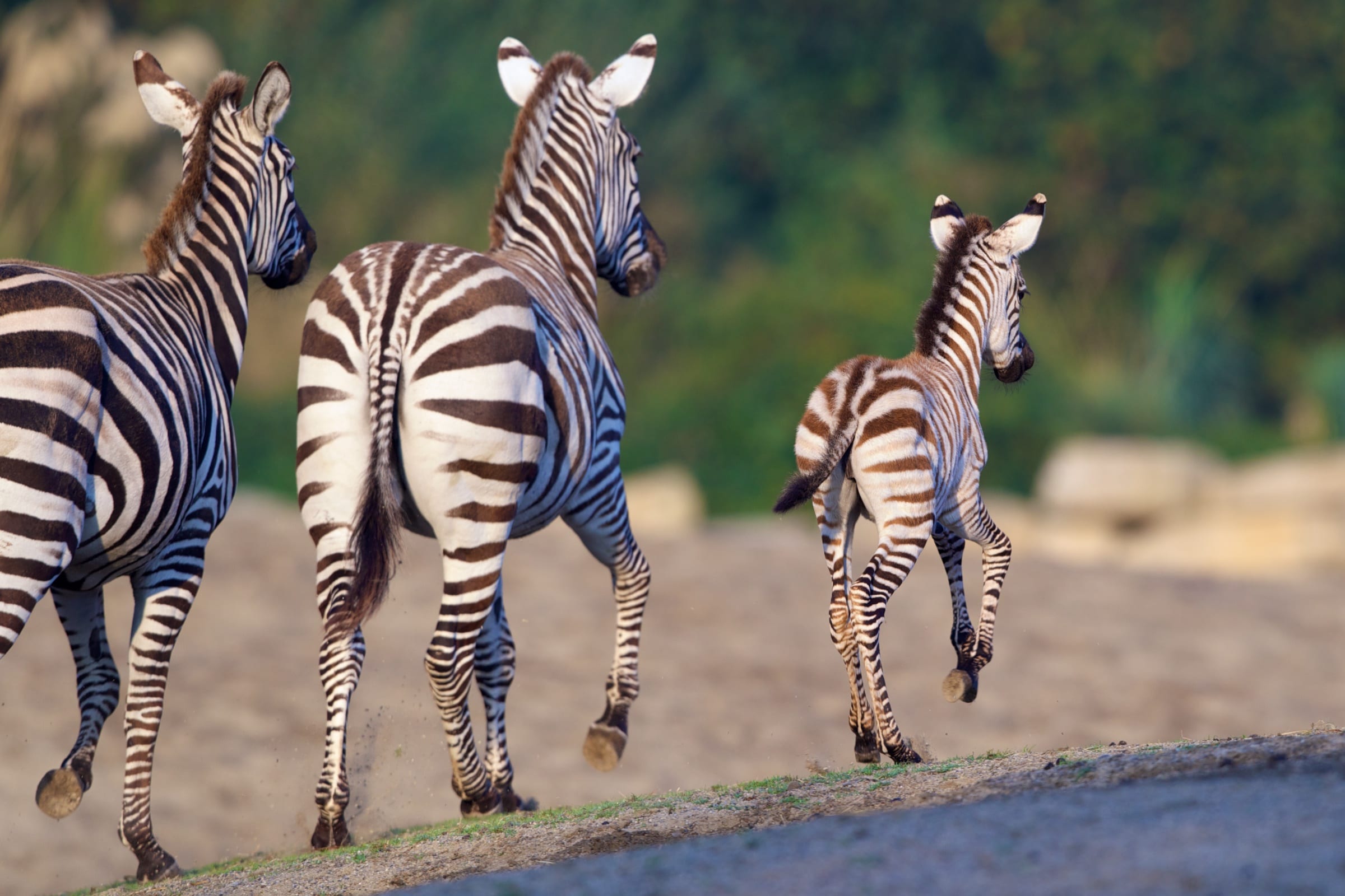 Zebras are very fast animals, and can zig-zag when chased with great dexterity. They can reach speeds of up to 65km/h in the open, and foals can run with the herd mere hours after birth.