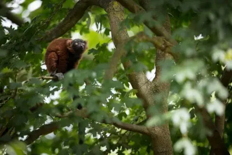 Red ruffed lemurs are very vocal. They use alarm calls to alert others if there is a predator nearby and gather a ‘mob’ or group to back each other up against the threat.
