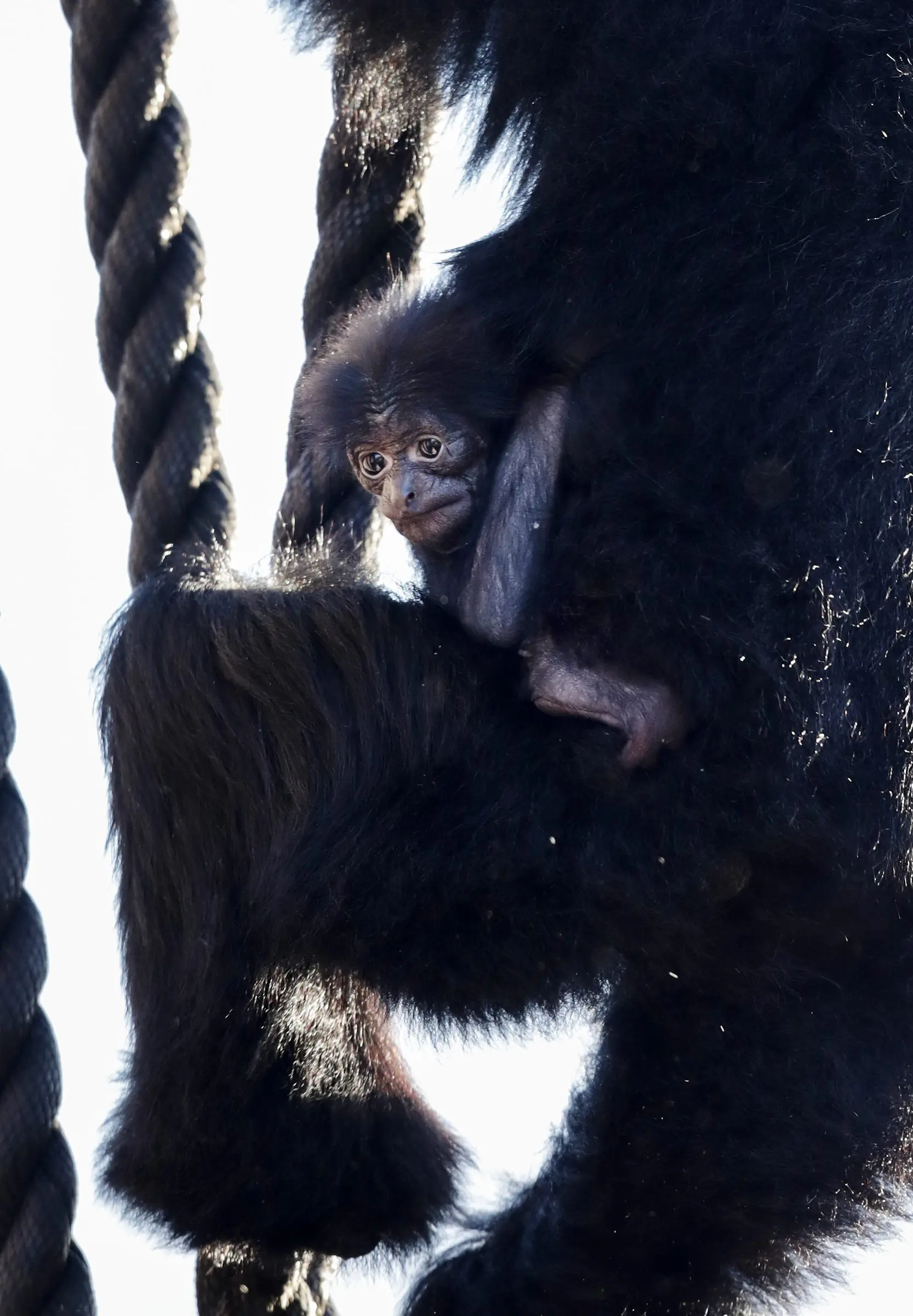 Siamang gibbons live in small groups of 3 to 6 individuals – a monogamous (having only one mate) mating pair and their offspring who have yet to leave the family. When an infant is born, it clings to its mother for around 8 months. At 6-8 years old, the siamang will leave their family group to find a mate and start a new family.
