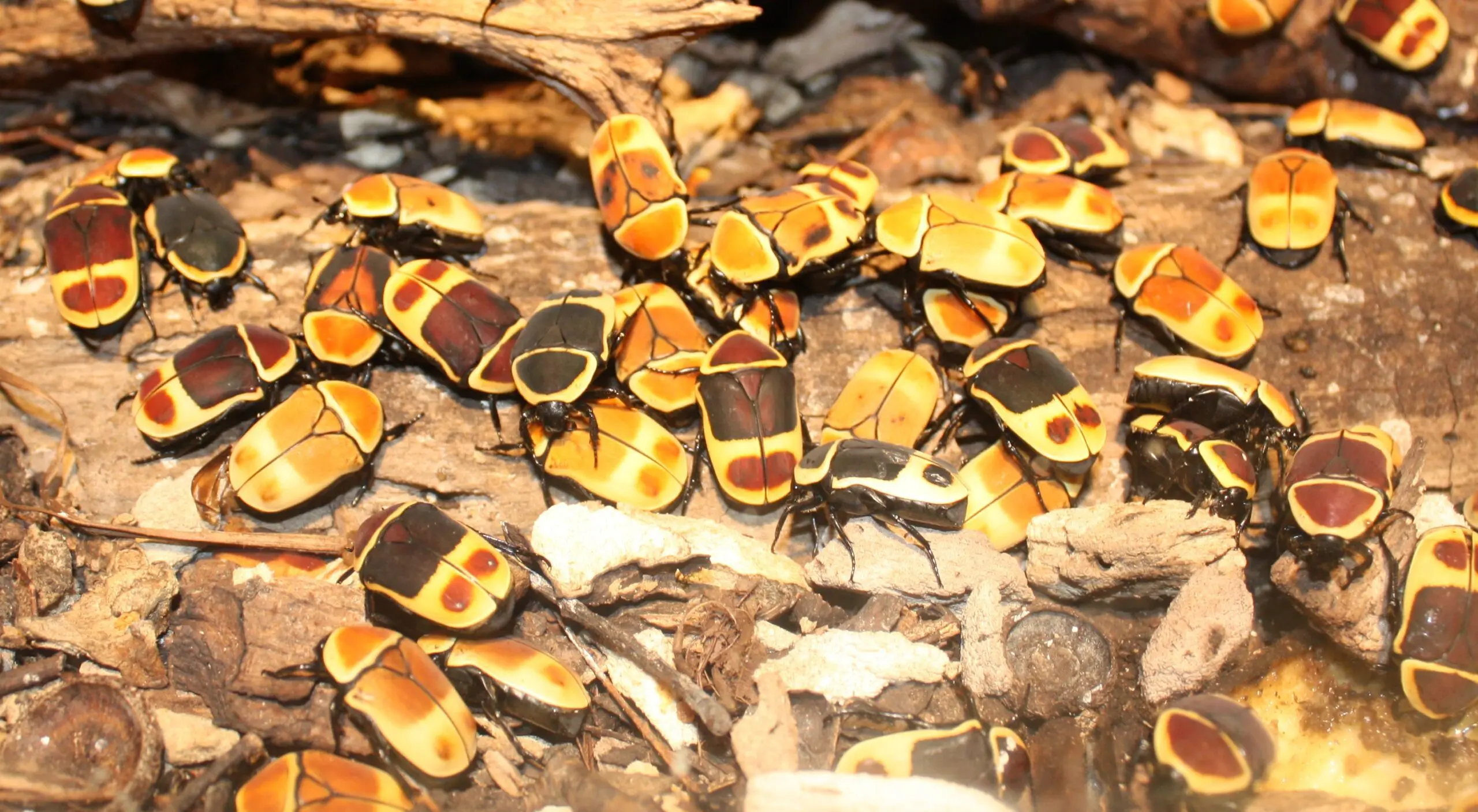 The sun beetles can be found in the Discovery & Learning Centre at Dublin Zoo. You might sometimes also see them in the royal python and phantasmal poison dart frog habitats in Zoorassic World.