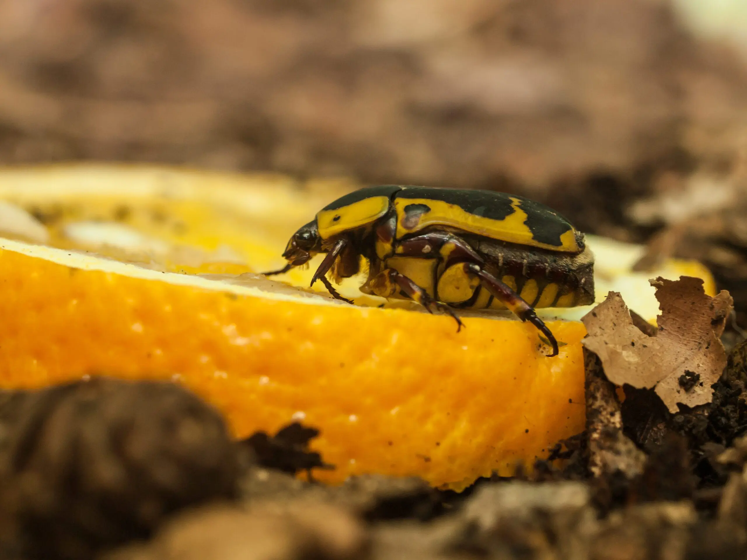 Sun beetles are a species of beetle from the subfamily Cetoniinae, best known for their dark brown and yellow back markings